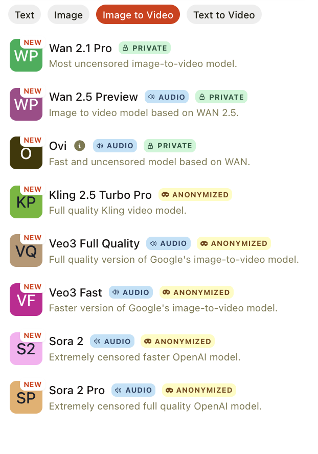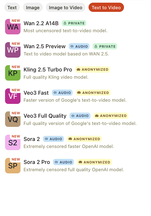 We prioritized state-of-the-art open-source video generation models, but we’re also enabling access to models such as the recently launched Sora 2, Google’s Veo3 and Kling Turbo, as they provide the best quality on the market.